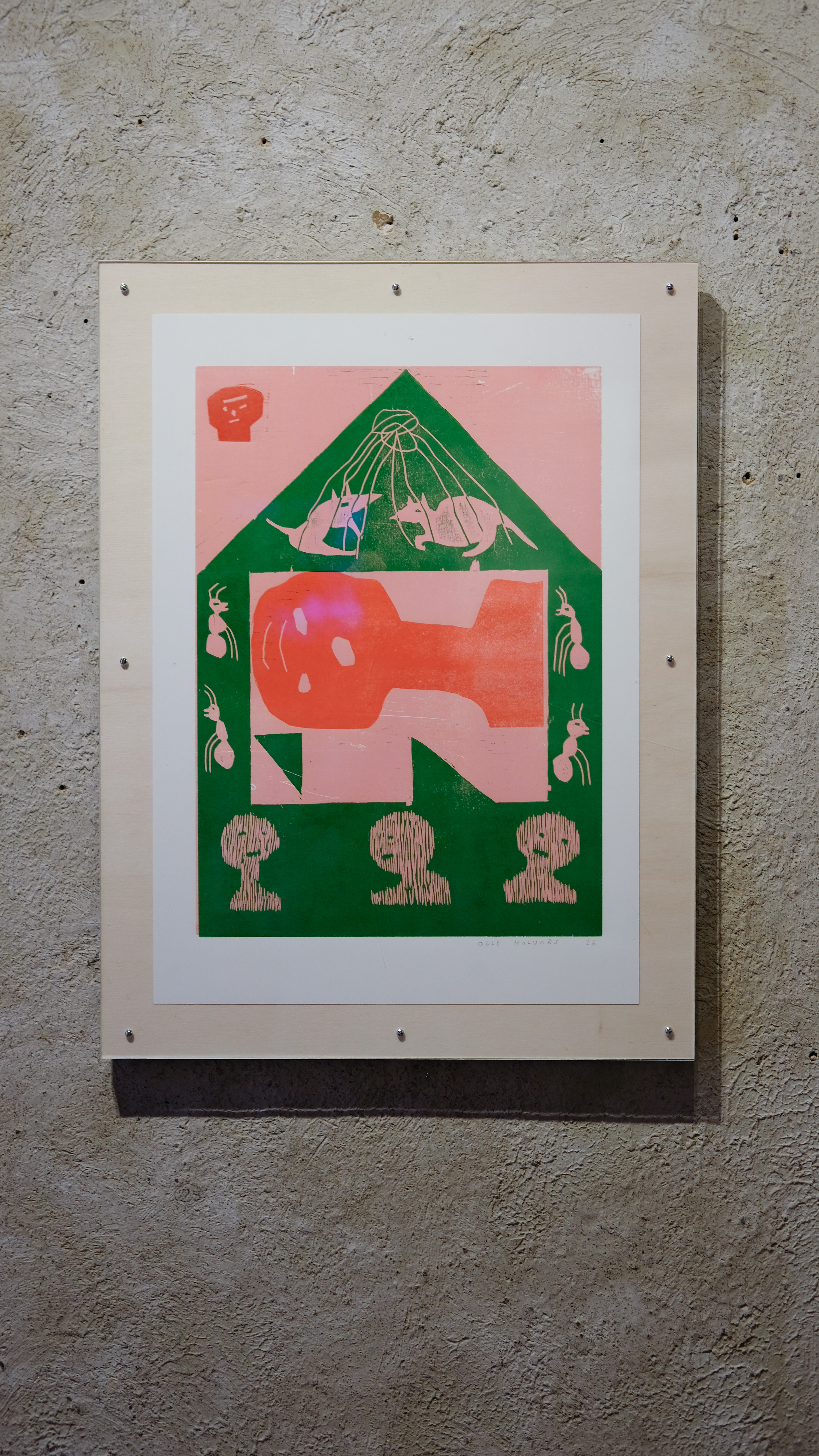Olle Halvars (b 1985) is a visual artist based in Stockholm, Sweden. He utilizes different printmaking techniques, painting, murals, drawing and three dimensional objects. His work embodies a patchwork of abstract and figurative elements merged (and forced) together.