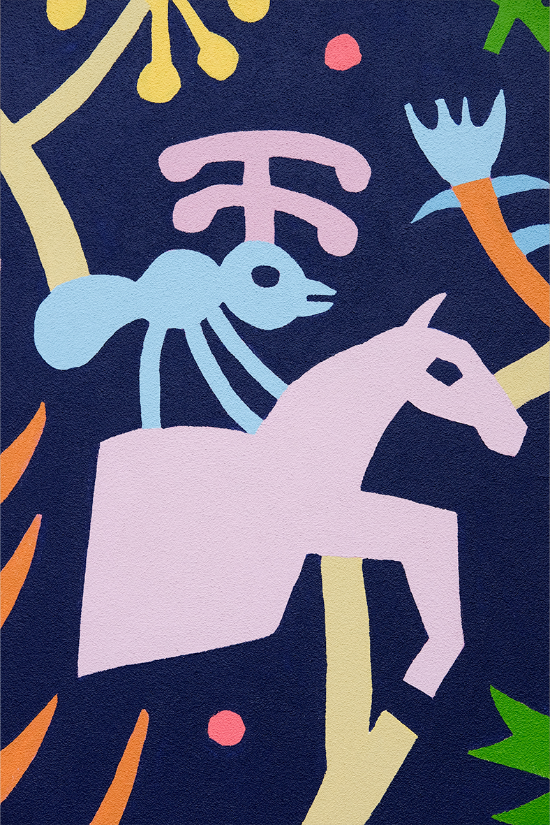 The style of expression is a mix of cut outs, broad brush strokes and carved wood. A slow, analogue method is used to enable an intuitive driven practice which embraces and incorporates mistakes in the making process.